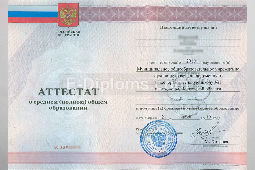 У нас на сайте Вы можете заказать аттестат об окончании 11 классов с 2010 по 2013 года включительно. Выбирайте любую школу России, а мы изготовим качественный документ быстро, профессионально, анонимно. Доставка бесплатна, оплата при получении, для проживающих в регионах доступна услуга «макет», есть скидки. При заказе до 14.00 привезем уже завтра!